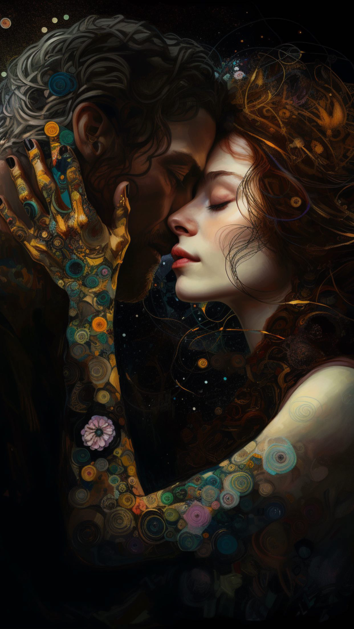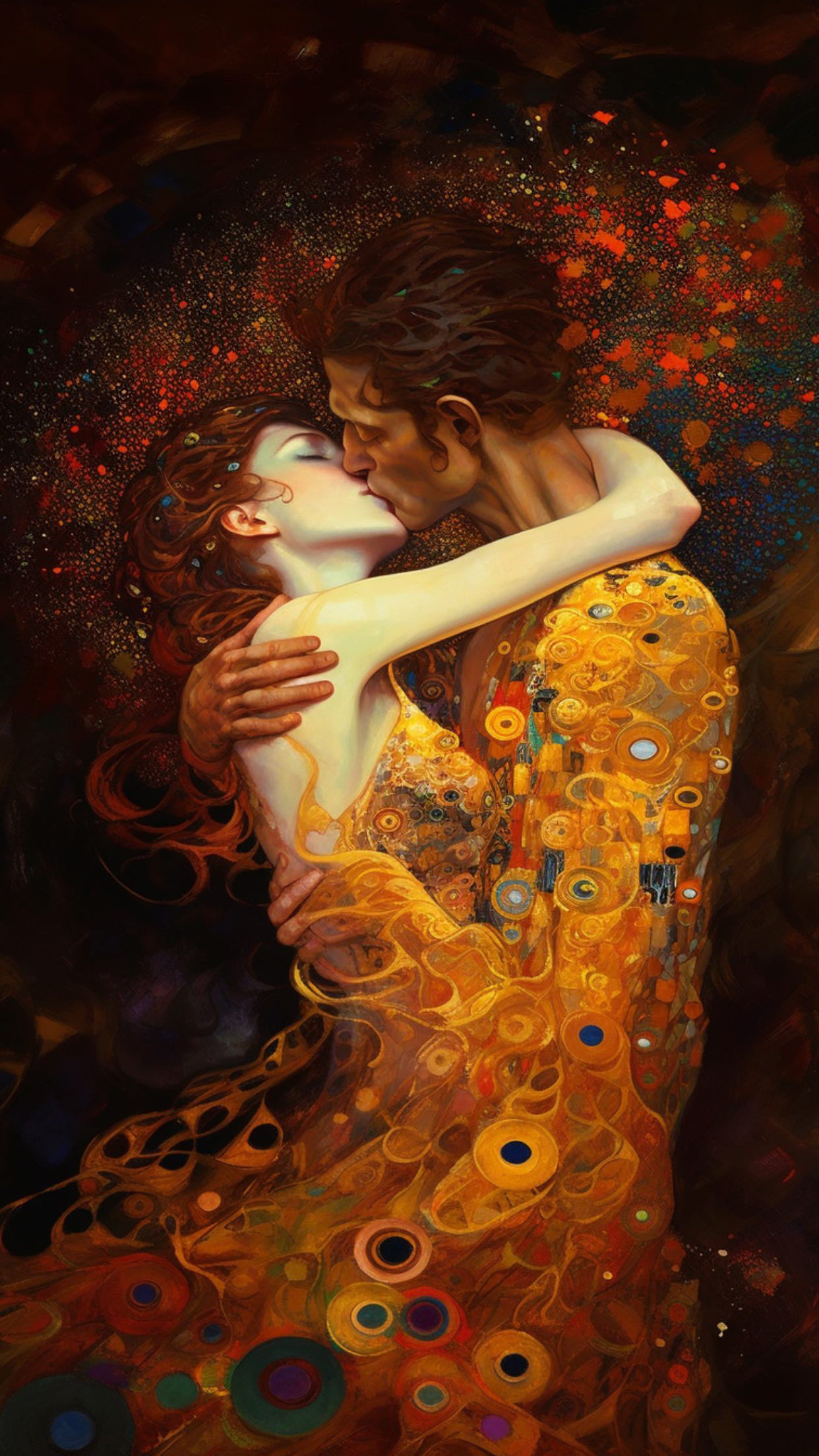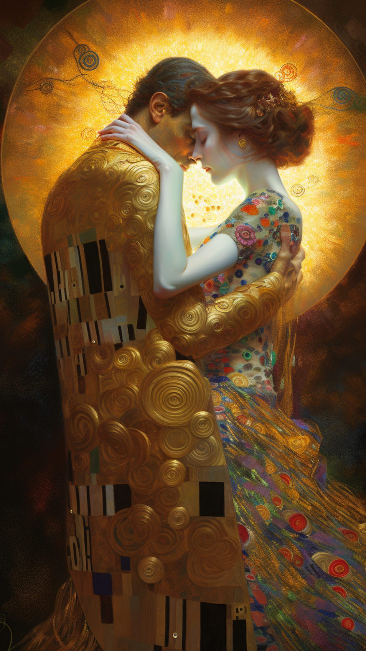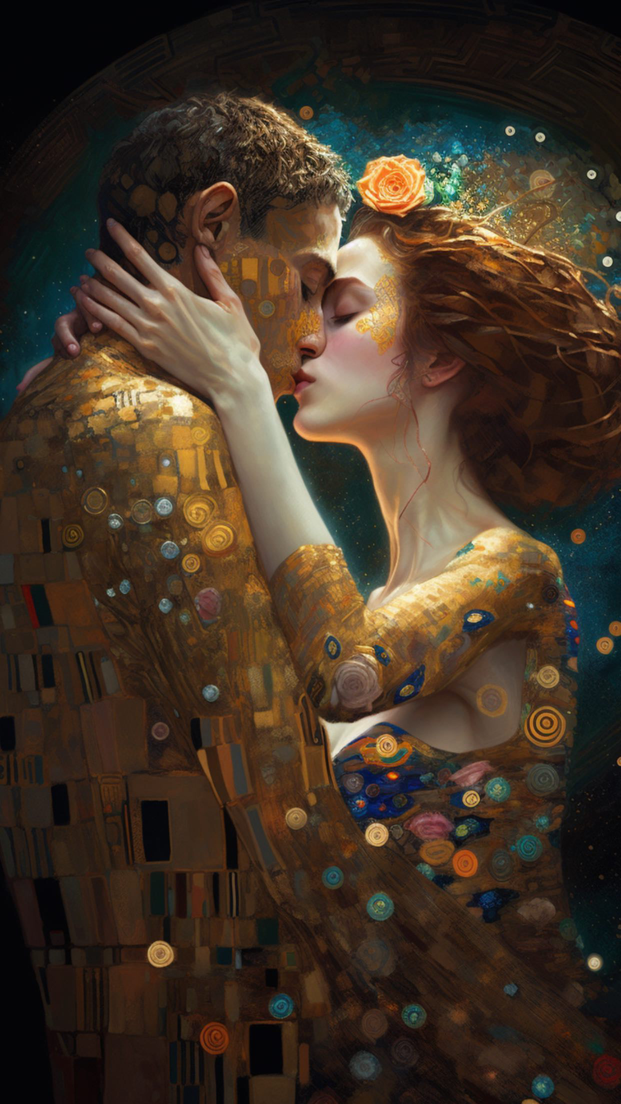 My personal vision of Klimt's The Kiss reflects the deep emotional connection between two souls captured in a timeless moment of intimacy and unity. The work’s intricate gold leaf detailing speaks to the richness of the love and the sacredness of the bond, almost as if the figures are surrounded by a divine aura.